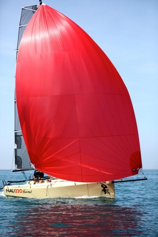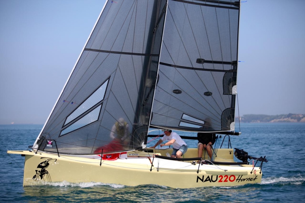 Ezeket szem előtt tartva kértük meg régi partnerünket, Andrej Justint, hogy tervezzen ezekre a problémákra megoldást jelentő, ízig-vérig Nautic kishajót. Úgy érezzük, sikerült neki. Már első pillantásra látszik: ez a hajó akar valamit; modern vonalvezetés, sportos megjelenés jellemzi, bőséges vitorlázat szél ellen és bő szélben is, amelyet karbon árbocra húzhatunk fel, a maximális teljesítmény elérése érdekében. Nagyhajókat megszégyenítő merüléssel rendelkezik, ez biztosítja a szükséges visszaállító-nyomatékot szerény vízkiszorítás mellett. Ez a kis „darázs” is a nagytestvérhez hasonlóan születik, az üvegszálas PVC habmagos szendvics szerkezetet vákuuminfúzió során itatjuk át vinilészter gyantával, a test a kritikus pontokon karbon erősítést kap. A végeredmény egy erős, könnyű kis dingi készen egy laza családi élményvitorlázásra vagy egy izgalmas verseny futására, Ezeket segíti az egyszerű, átgondolt szerelvényezés és a gennaker lehúzásának módja, amellyel gyorsan, biztonságosan akár egy ember is leszedheti a vitorlát a bőszelezés végén. Így három fő teljes értékűen tudja megvitorlázni a hajót versenykörülmények között is.